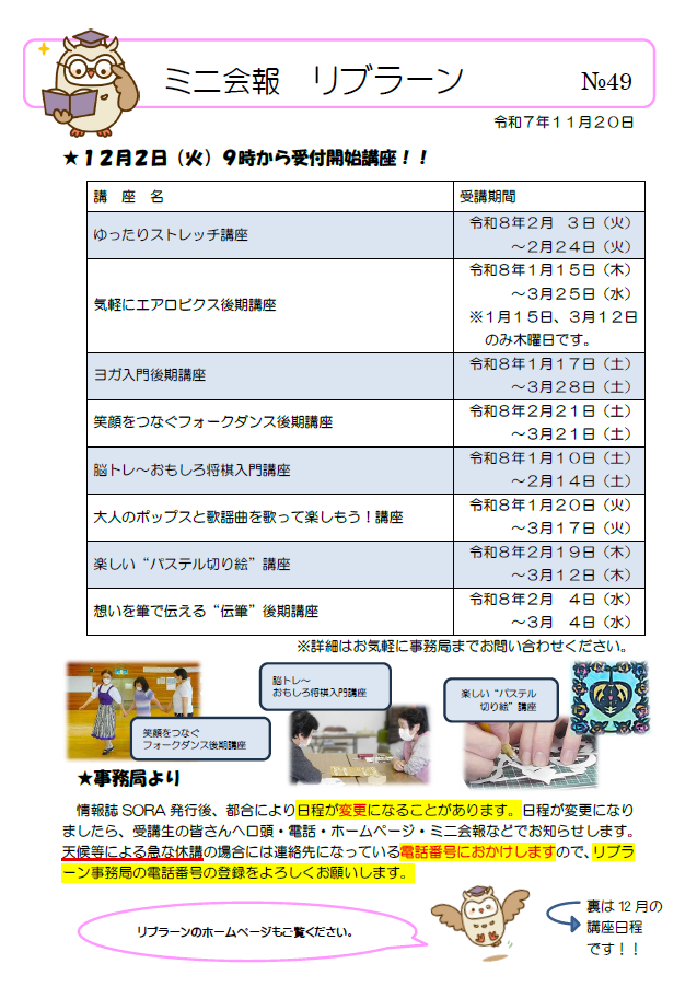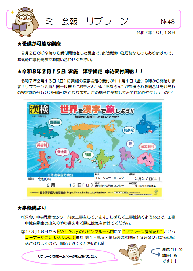 基本はひと月に一回配付・ホームページにて更新させていただく予定です。